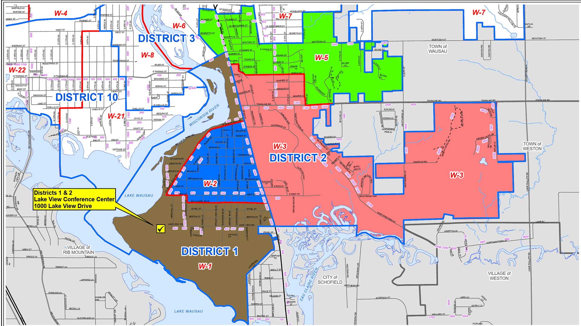 Polling location for District 2 is at Lakeview Conference Center at 1000 Lake View Dr, in Wausau. More information on polling locations can be found on the City of Wausau elections page.